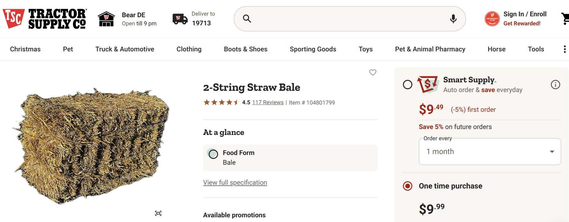 -3-4 bales or bags of STRAW (not hay!) example below!